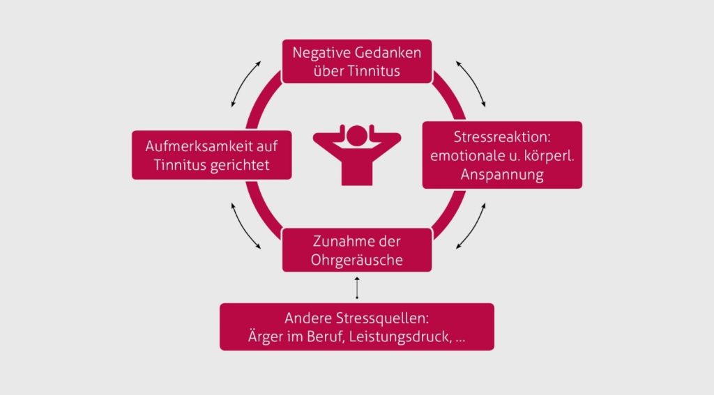 Mit einem Tinnitus geht meist eine erhebliche Beeinträchtigung der Lebensqualität einher, da sich durch einen chronisch anhaltenden Tinnitus starke Einschränkungen im Alltag ergeben können. Für die Betroffenen entsteht so ein hoher Leidensdruck, der sich in depressiven Verstimmungen, Schlafstörungen, Konzentrationsstörungen, das Gefühl der Hilflosigkeit und des Kontrollverlusts sowie Ängsten niederschlagen kann.