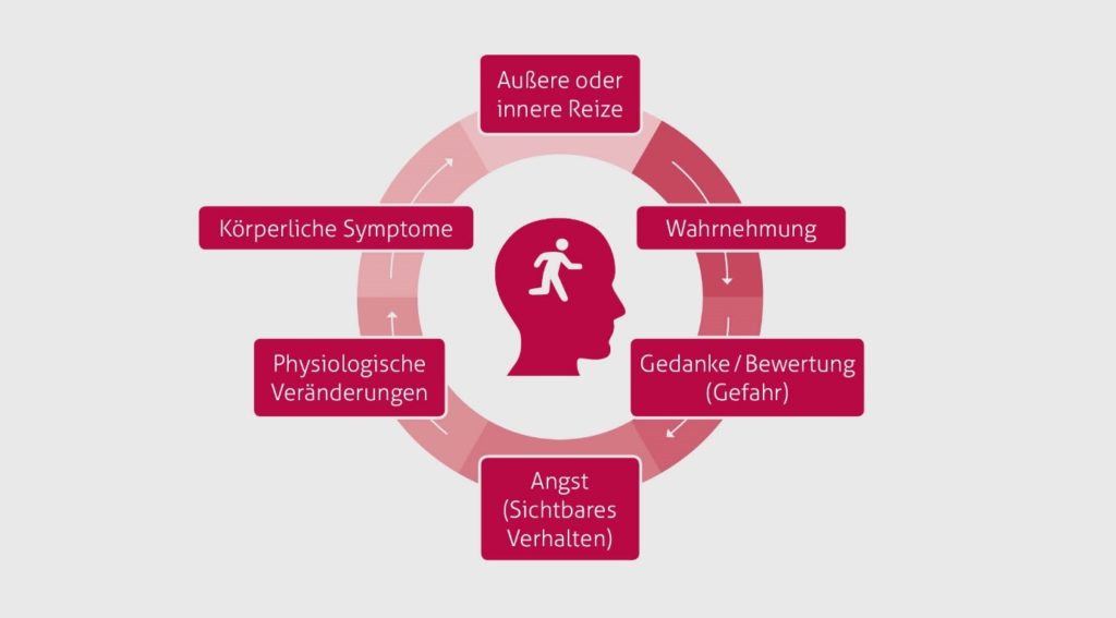 Betroffene achten meist verstärkt auf physiologische Abläufe und Symptome des Körpers: dadurch wird die Angst verstärkt und es folgt eine Angstreaktion in Form von weiteren, körperlichen Symptomen, wie beispielweise Herzrasen oder Atemnot.